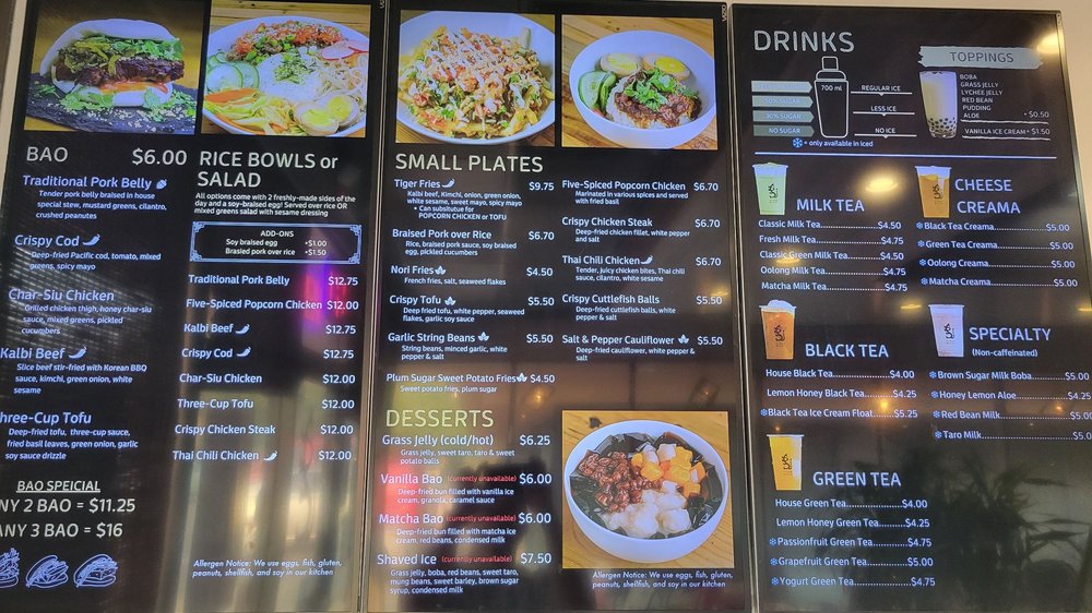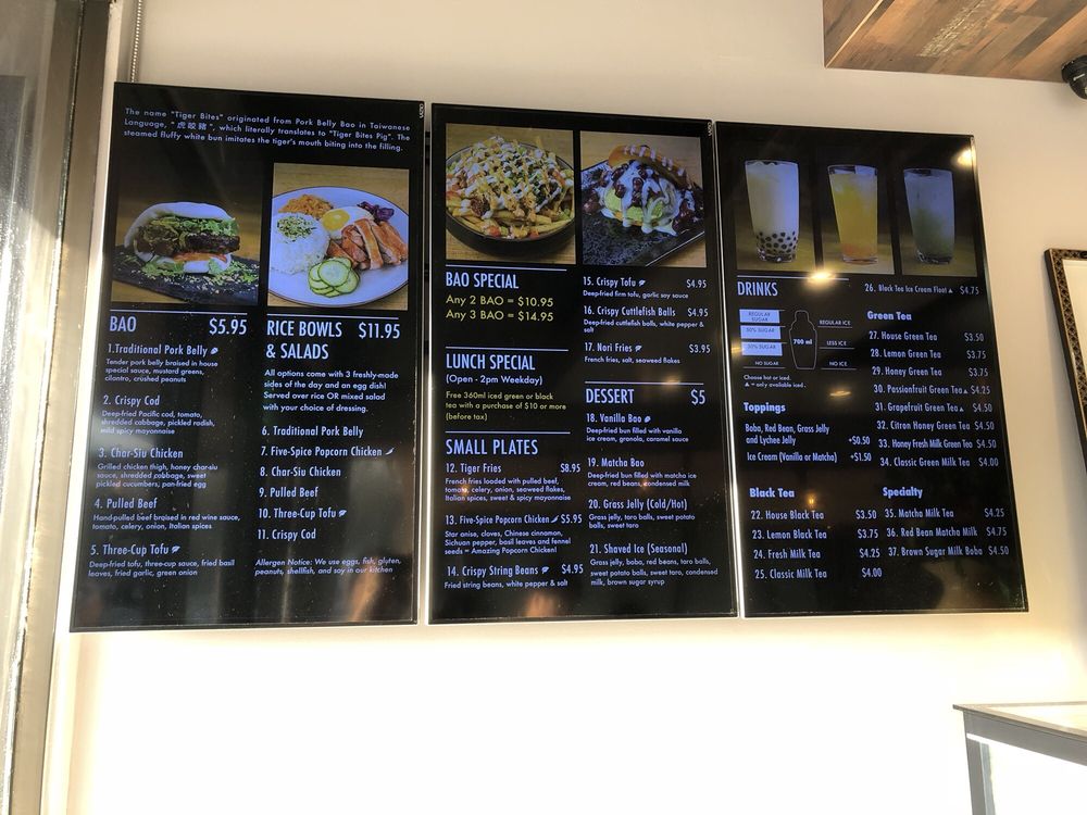 Introducing Tiger Bites, a trendy and casual Taiwanese restaurant located in Bellevue, WA. Offering a diverse menu featuring small plates like Thai Chili Chicken and Tiger Fries, as well as rice bowls and salads with options like Traditional Pork Belly and 5 Spice Popcorn Chicken. Customers rave about the generous portions, quick service, and fresh ingredients used in each dish. The menu also includes bubble tea options with customizable sugar and ice levels. While some reviews mention inconsistencies in chicken quality, overall, Tiger Bites is praised for its delicious and affordable offerings. Don't miss out on their must-try items like the Tiger Fries, Crispy Chicken Steak, and refreshing yogurt green tea. Visit Tiger Bites for a satisfying and flavorful dining experience.
